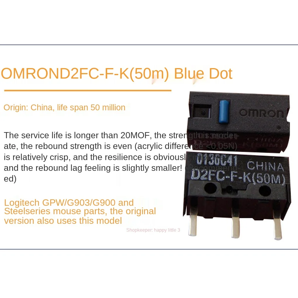 Original OMRN Mouse Micro Switch D2FC-F-K (50m) Blue Dot Compatible G series/Razer Mouse D2FC-F-7N 10M 20M Replacement Parts